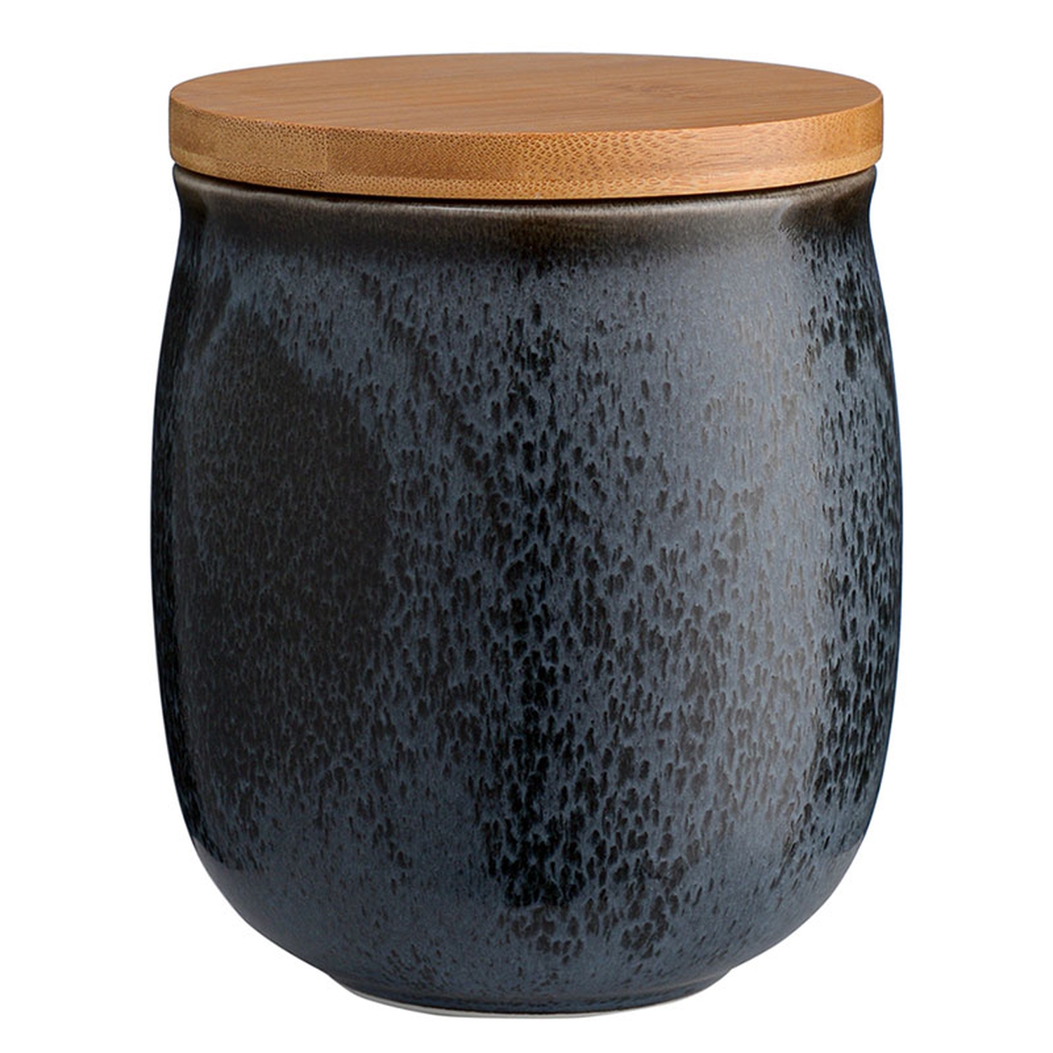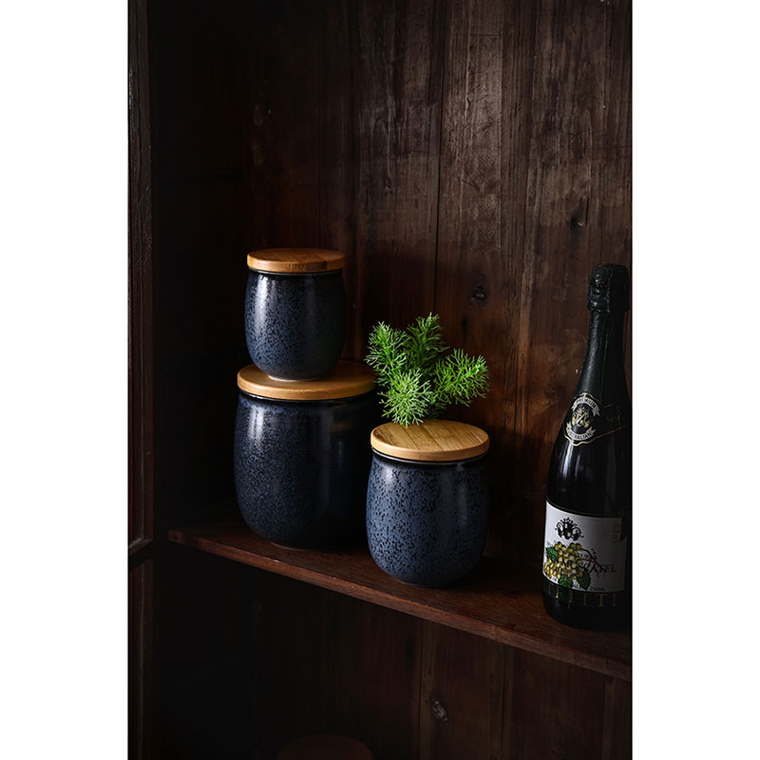 Фарфоровая банка в элегантном дизайне украсит стол и разнообразит сервировку. Емкость выполнена из высококачественного фарфора и покрыта реактивной глазурью, благодаря которой изделие приобретает неповторимую текстуру. Бамбуковая крышка защищает продукты от заветривания. Можно мыть в посудомоечной машине и ставить в микроволновую печь, морозильную камеру, а также использовать в духовке при температуре не выше 220 °C. Предварительно бамбуковую крышку следует снять.