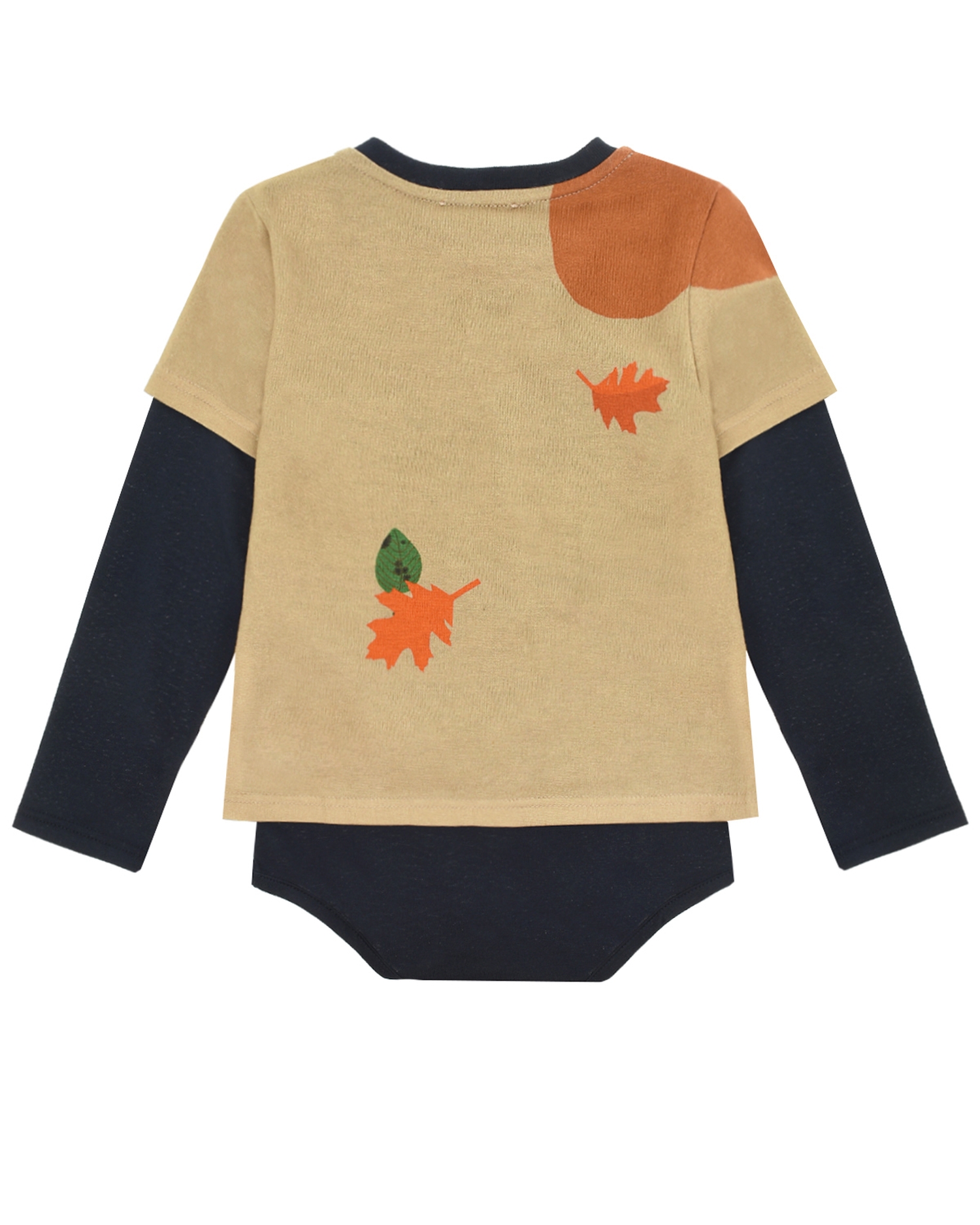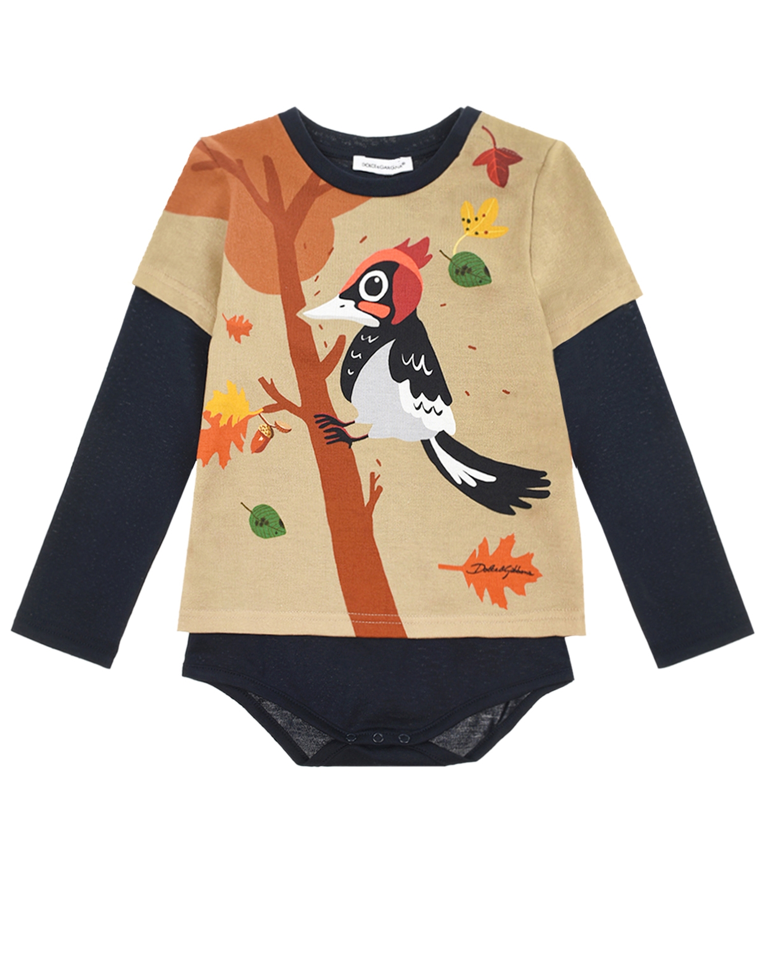 L1JO0N G7XNX HJ2NE Z21 Боди Dolce&Gabbana имитация футболки поверх толстовки, принт дятел на ветке
