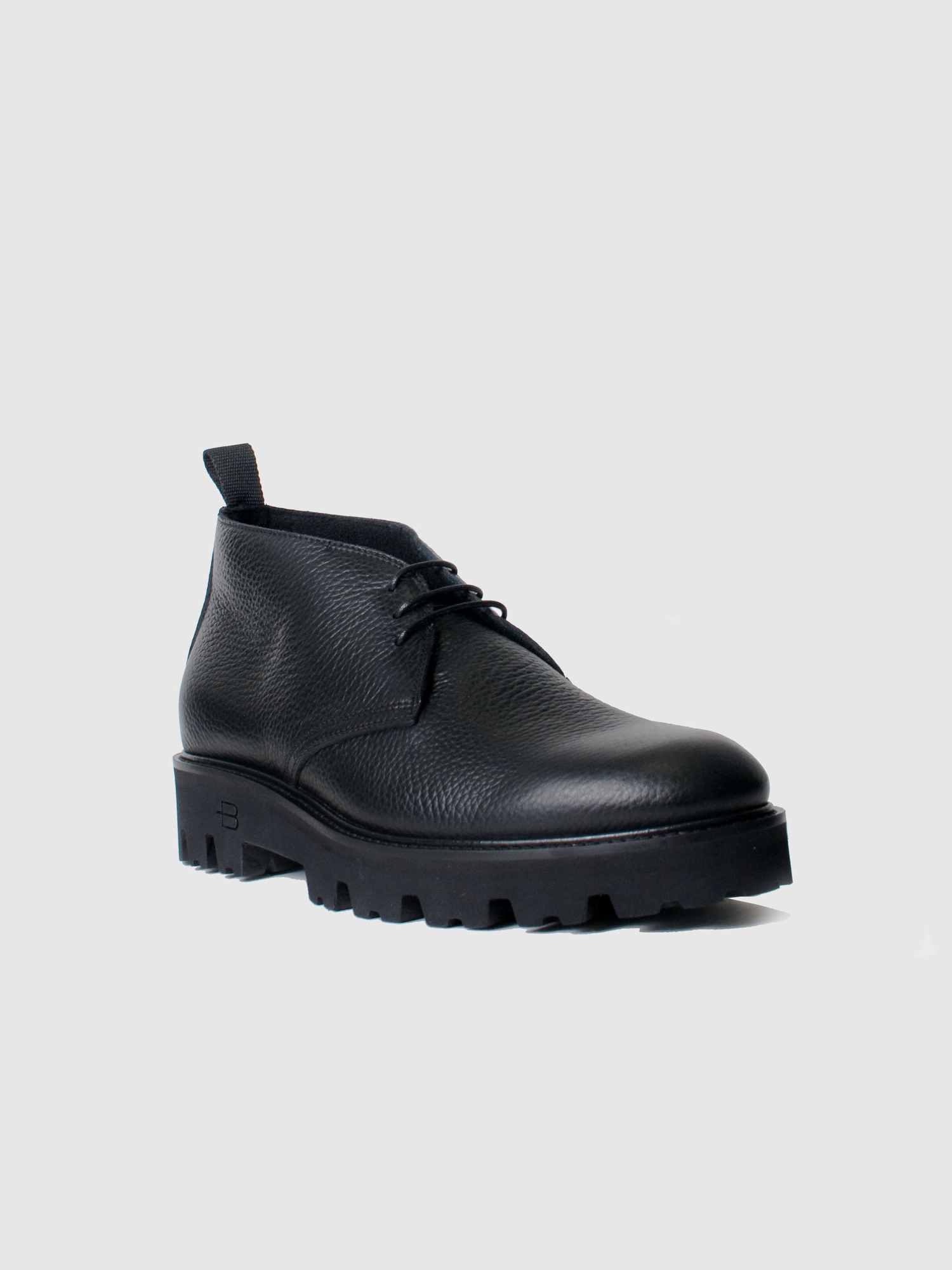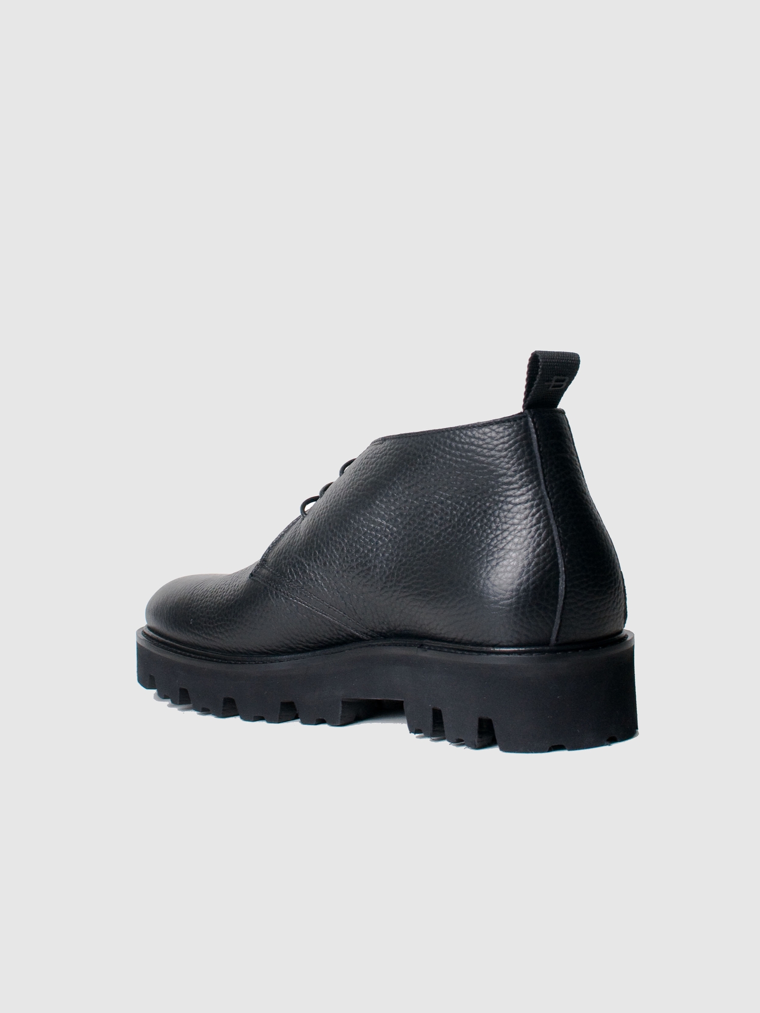 Ботинки из чёрной кожи — прекрасный вариант для базовой повседневной обуви. Благодаря сдержанному дизайну и классическому чёрному цвету, пара будет одинаково уместно смотреться с любой верхней одеждой. Пара с утеплённой шерстяной подкладкой и стелькой из натуральной кожи, высокая подошва выполнена из резины.