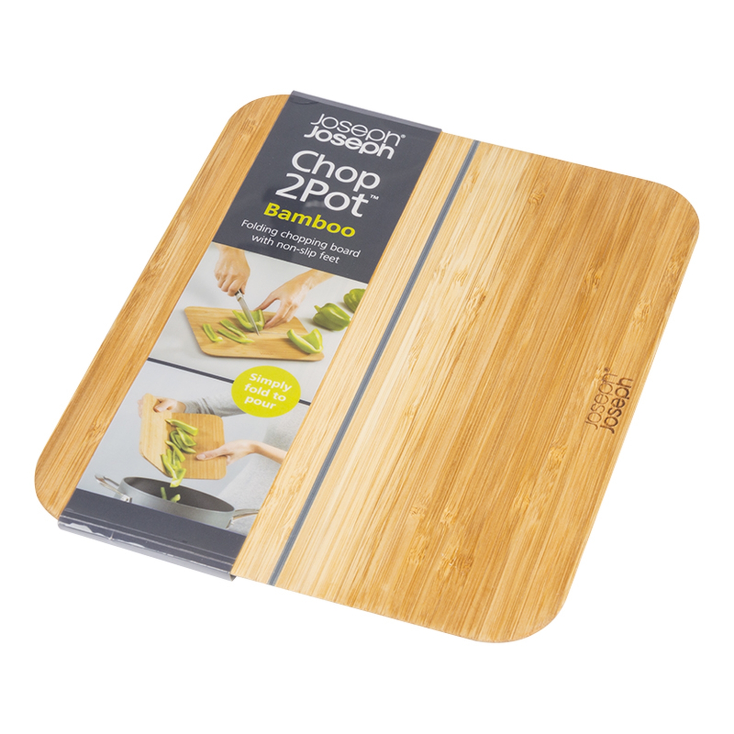Знаменитая складная доска Chop2Pot, выполненная из высококачественного натурального бамбука в принципиально новом дизайне. В плоском состоянии она предоставляет надёжную поверхность для разделывания любых продуктов. В результате лёгкого сжатия по краям доска аккуратно складывается, образуя удобный совок, который позволит аккуратно переложить нарезанные ингредиенты в нужную ёмкость. Нескользящие силиконовые ножки обеспечивают неподвижность рабочей поверхности. Рекомендуется периодически смазывать доску минеральным маслом, чтобы продлить срок эксплуатации.