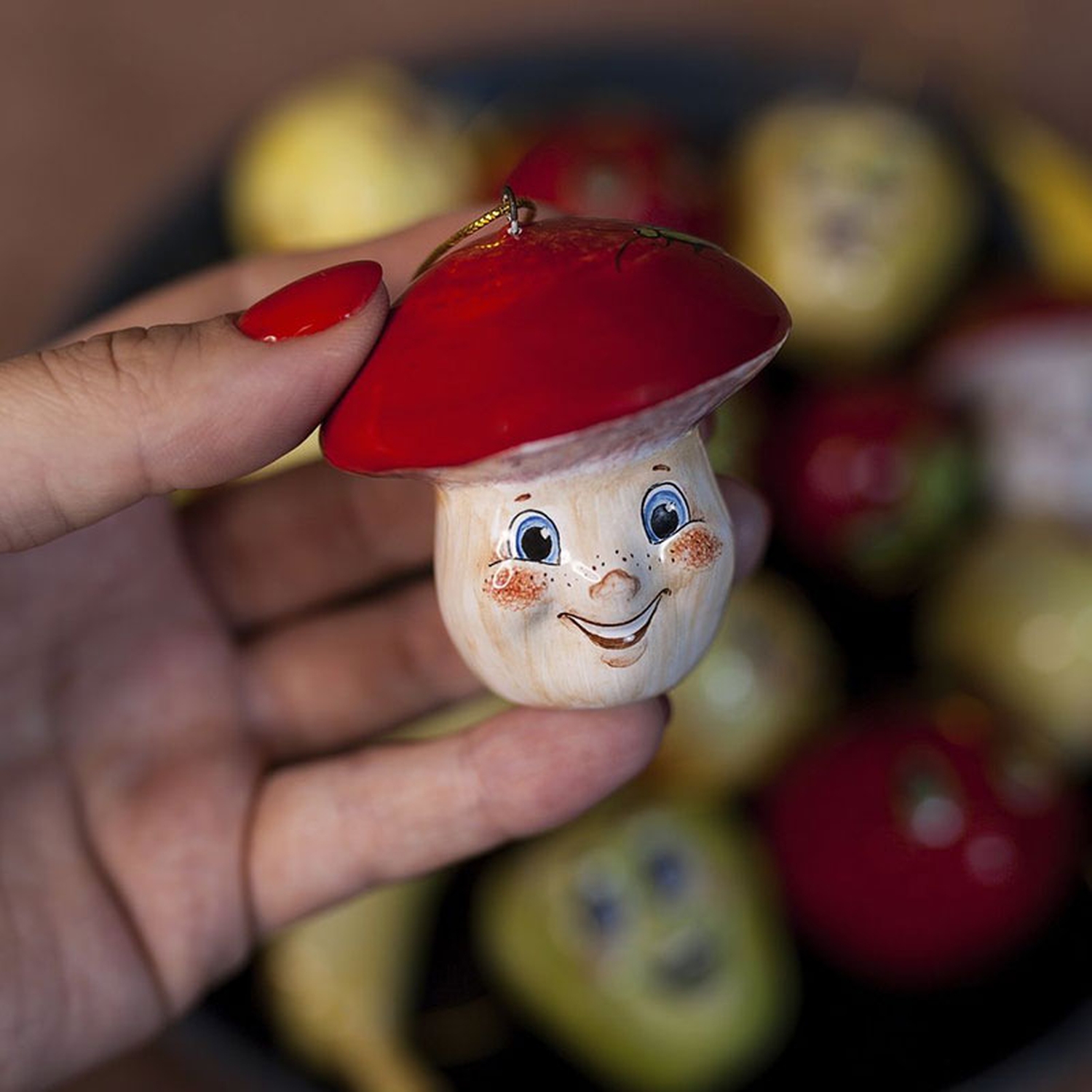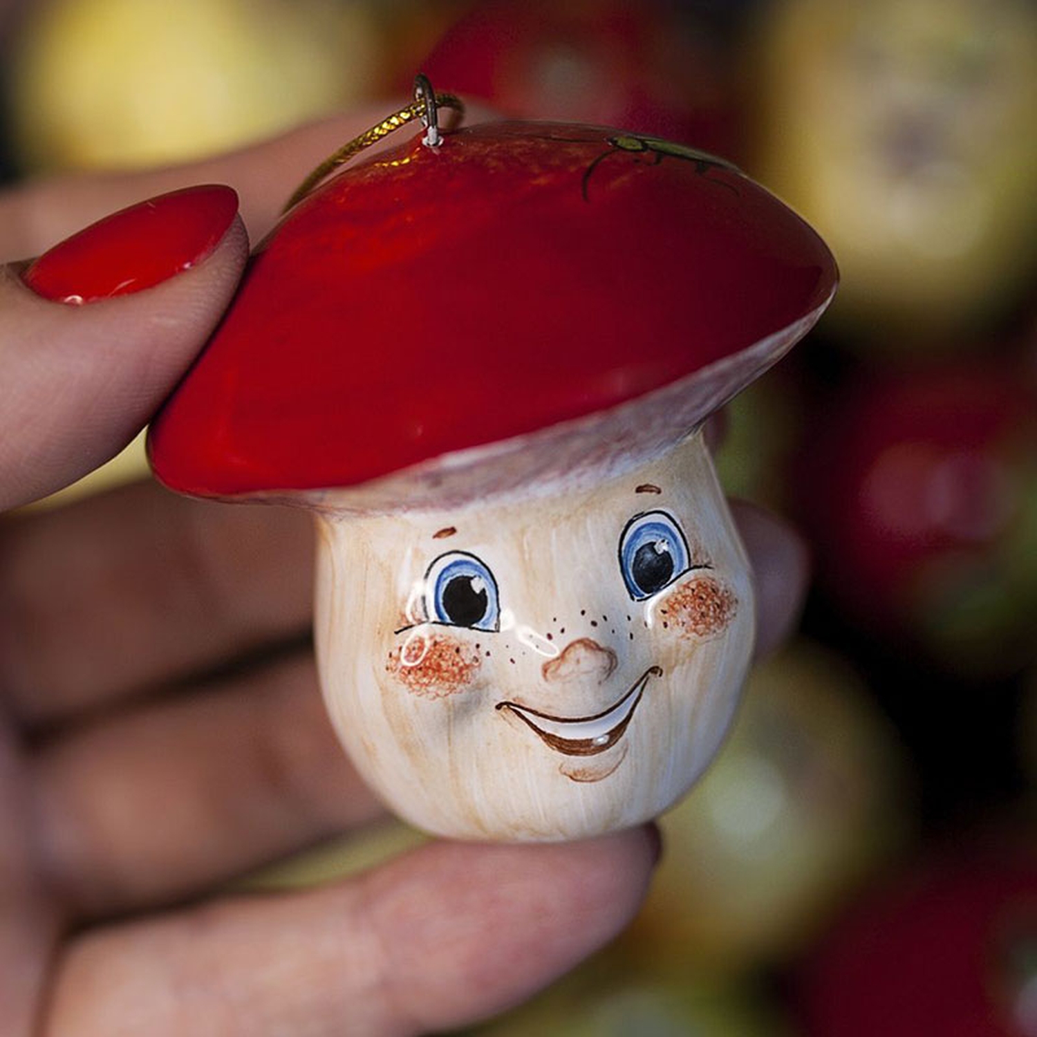 Изделие выполнено в технике майолика, материалы: красная глина, белая глазурь, высокотемпературный обжиг, художественная роспись. Изделия ручной работы входят в коллекцию Фруктовые эмоции и представляет обаятельного, смущенно улыбающегося грибочка. Художник воспользовался всей роскошной палитрой современных керамических глазурей, чтобы передать непосредственность этого малыша. Данное изделие станет украшением вашего интерьера, создаст настроение, будет чудесным подарком. Соберите всю коллекцию ярких, красивых, эмоциональных овощей и фруктов. Изделия из этой коллекции могут быть также использованы для создания эффектных интерьеров в кафе, ресторанах, барах, для украшения новогодней ели или как модель на уроках рисования.