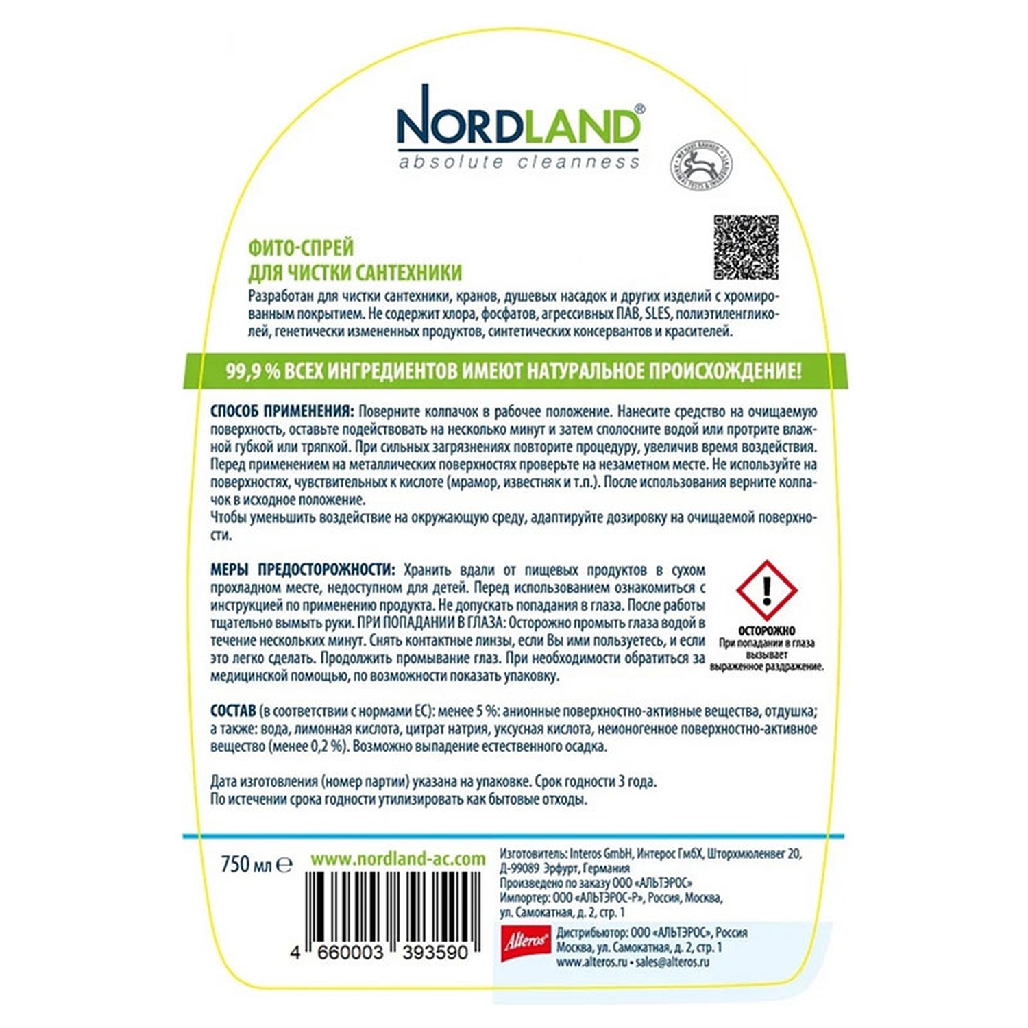 Фито-спрей NORDLAND для чистки сантехники, 750 мл. Разработан для чистки сантехники, кранов, душевых насадок и других изделий с хромированным покрытием. Не содержит хлора, фосфатов, агрессивных ПАВ, SLES, полиэтиленгликолей, генетически измененных продуктов, синтетических консервантов и красителей.