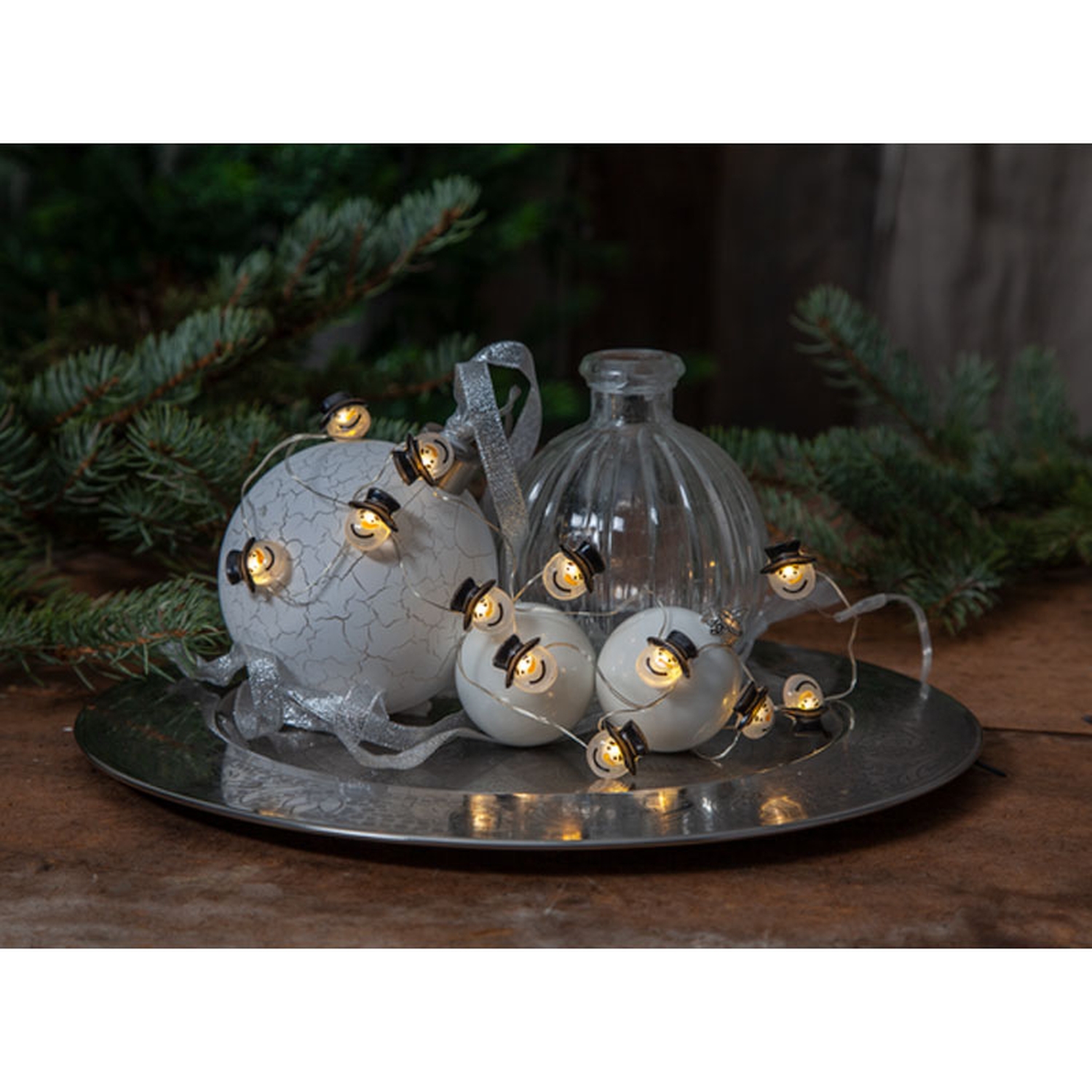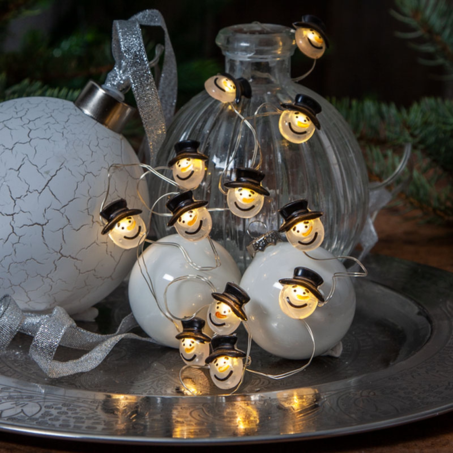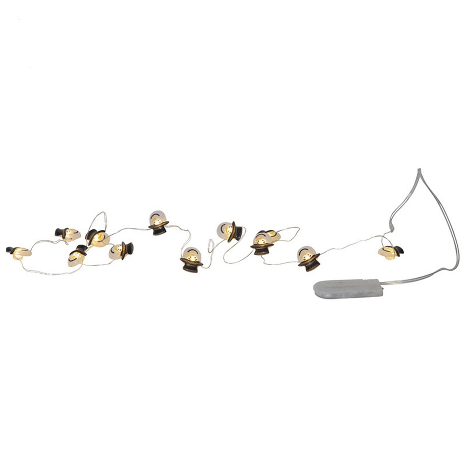 Гирлянда с плафонами в виде снеговиков. Предназначена для использования внутри помещений.