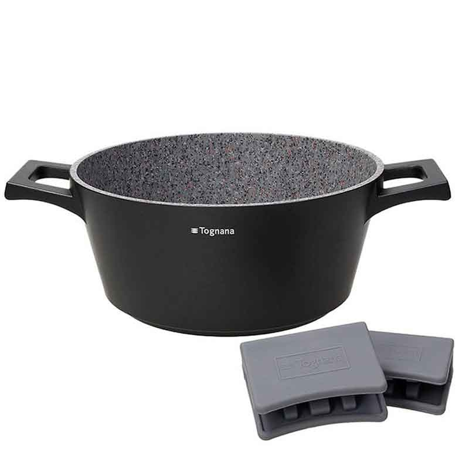 Корпус посуды выполнен из литого алюминия и основания из теплоизлучающей стали высокой толщины. Внутренняя поверхность посуды покрыта 4-х слойным антипригарным покрытием с эффектом гранита. Подходит для всех источников нагрева, включая индукционные.