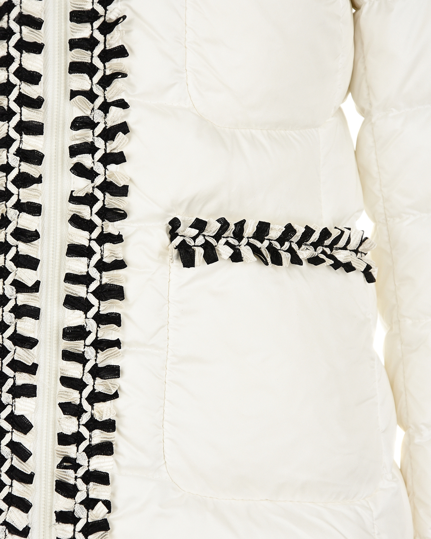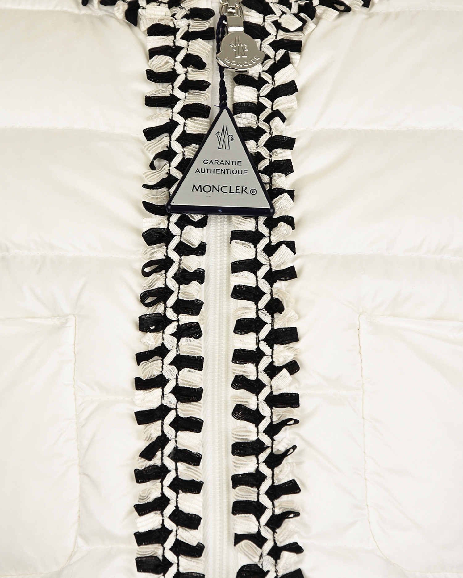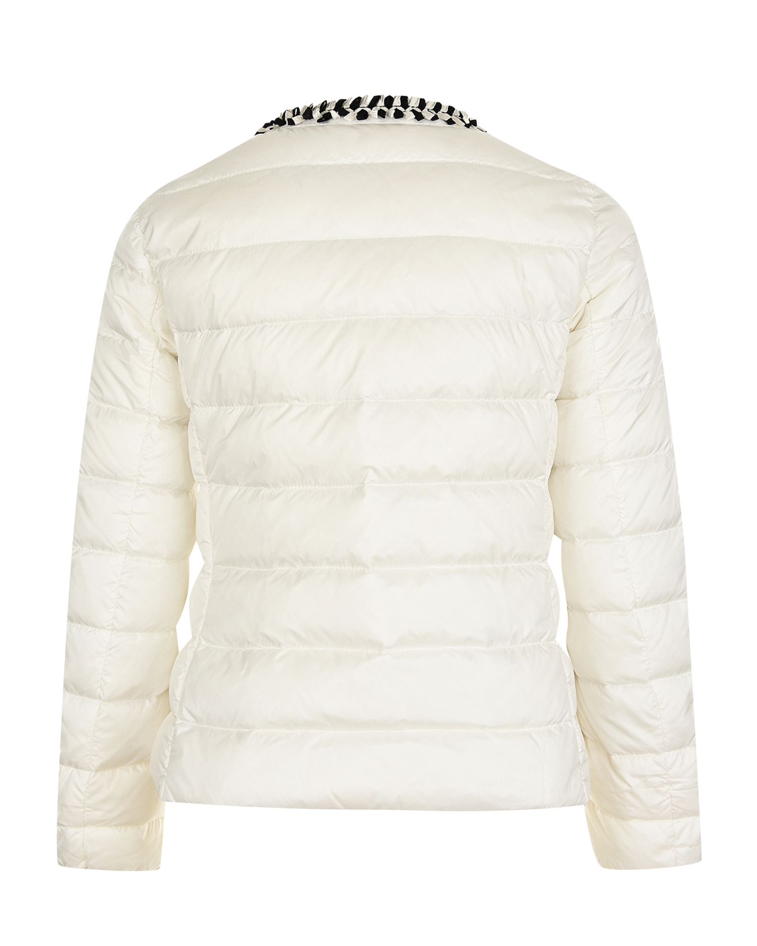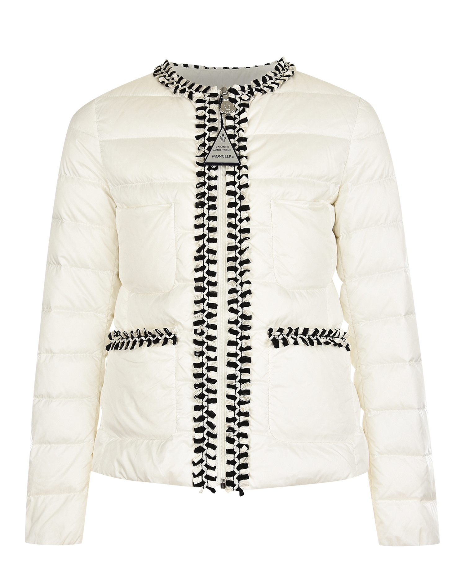 4536299 53048 032 L19P Куртка Moncler пух б/кап, притал, отделка бел/чер бахрома, 2 кармана 62-1