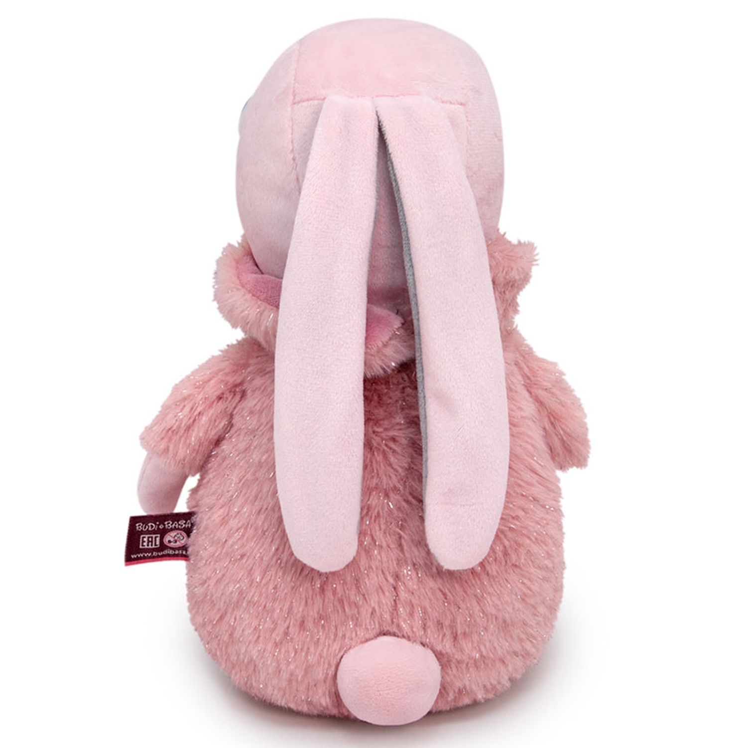 Крольчиха Нади в оригинальной, несъемной шубке из мягкого меха цвета розового крема, украшенной двумя объемными белоснежными помпонами на серебристой ленте.