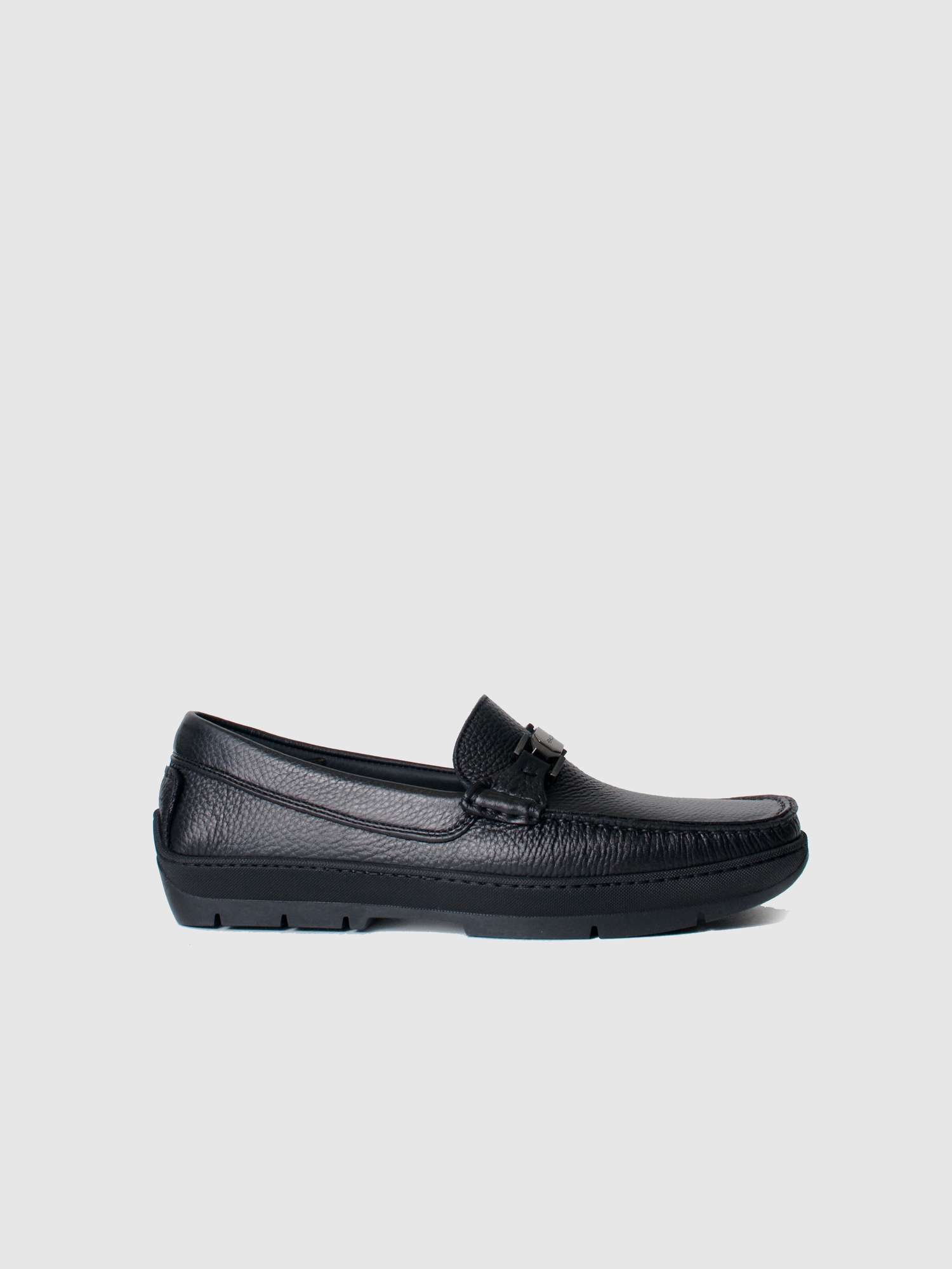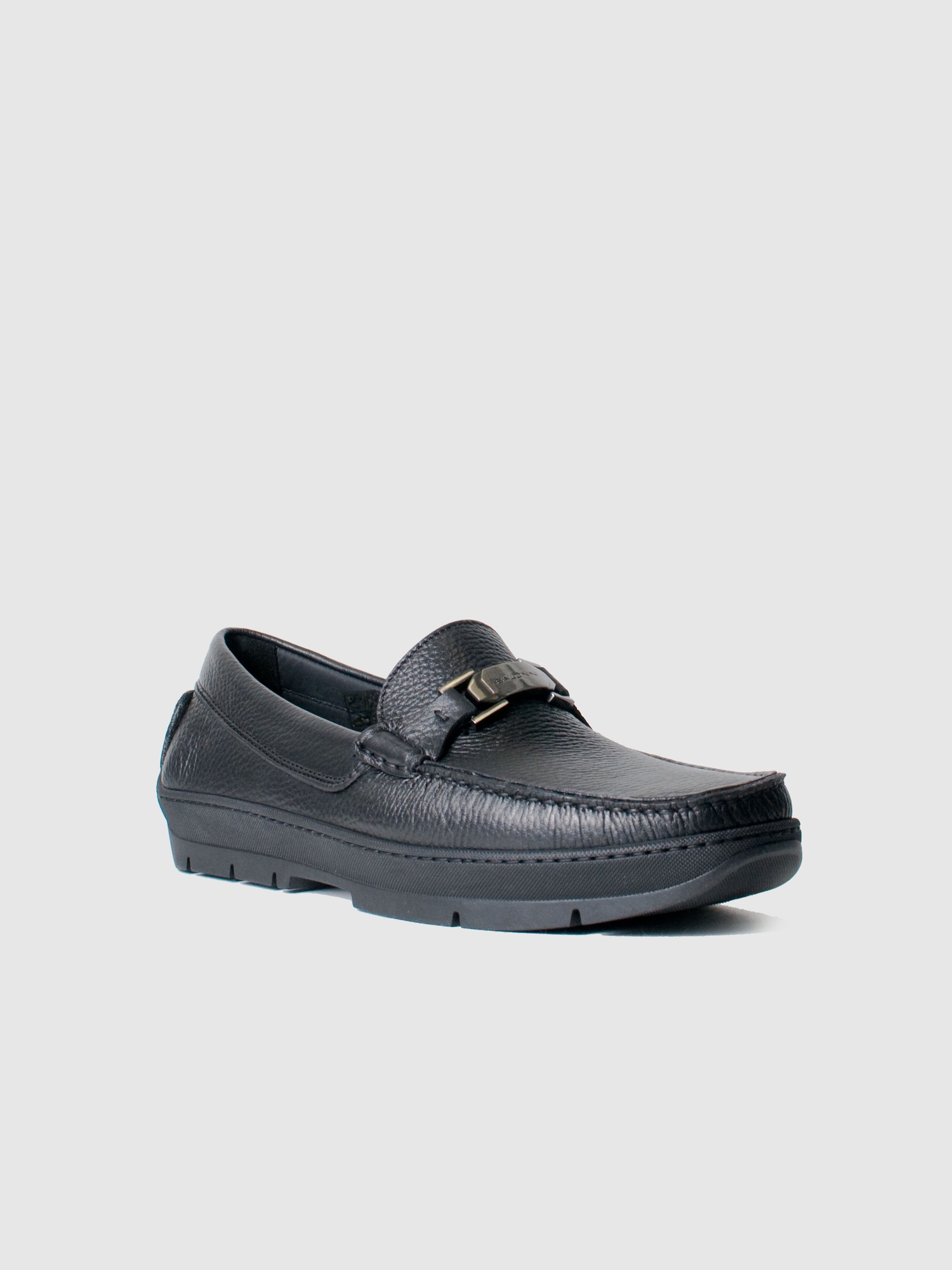 Мягкие мокасины из натуральной кожи в черном цвете. Комфортная модель на каждый день, которая подойдёт как к брюкам, так и к джинсам. Мокасины имеют внутри кожаную подкладку и стельку. Подошва выполнена из резины. Модель дополнена резиновой отделкой у основания и имеет пряжку с металлическим элементом.