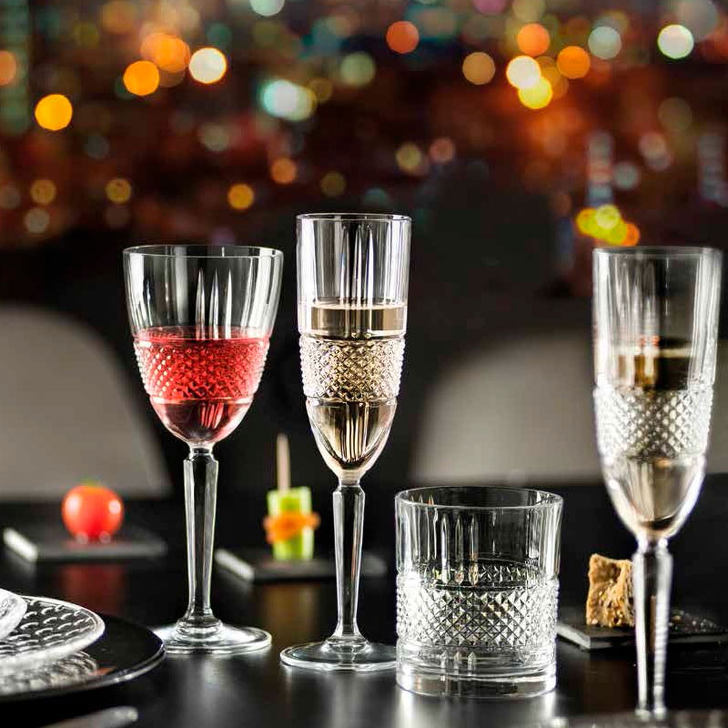 Набор из шести бокалов, которые подходят для подачи красных вин. Тюльпановидная форма посуды с широкой чашей позволяет напиткам «дышать», благодаря чему они быстрее раскрывают все самые тонкие оттенки вкуса и аромата. Элегантная ножка дает возможность удобно держать бокал в руке. В производстве посуды используется инновационный материал Luxion. Он представляет собой экологически безопасное хрустальное стекло, которое устойчиво к воздействию внешних факторов и моющих средств. Материал отличается прозрачностью, красивым блеском и прочностью. Коллекция выдержана в современном стиле и привлекает внимание геометрическим орнаментом.