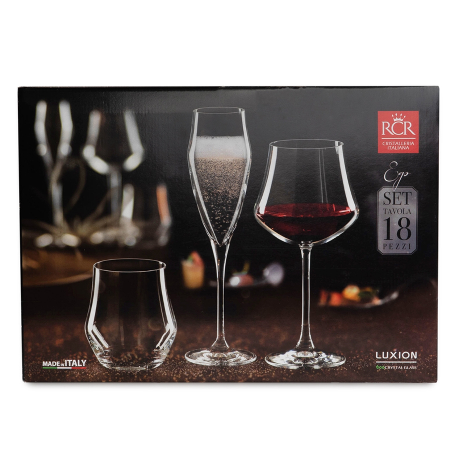 Набор «EGO» RCR представляет собой полный набор бокалов, необходимых для сервировки напитков во время торжества или обеда. Он включает 18 предметов: бокалы для шампанского, бокалы для вина, а также низкие стаканы для подачи безалкогольных напитков или для сервировки виски или коньяка. Набор отличается стильным и современным дизайном и непременно расскажет гостям о вашем безупречном вкусе. Он подойдет как для дома, так и для оснащения кафе или ресторанов. Набор Эго выполнен из высококачественного стекла, для изготовления которого не применяются токсичные вещества.