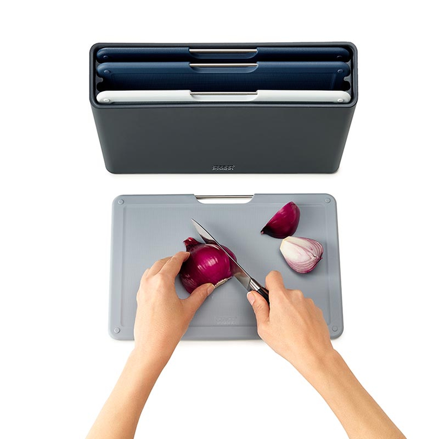 Набор разделочных досок Folio Large отлично смотрится на домашней и профессиональной кухне. В комплект входит 4 цветных аксессуара с закругленными углами и нескользящими ножками. Небольшие края по контуру удерживают сок и крошки нарезаемых продуктов. При создании изделий мастера используют высококачественный пластик, который не затупляет ножи и при резке не оставляет микроскопических частиц на пище. На текстурированной поверхности досок не заметны царапины. Простая и вместе с тем эффективная цветная кодировка позволяет легко распределять доски для разных типов продуктов, сохраняя максимальную гигиену в процессе нарезки и исключая взаимное загрязнение продуктов. Эргономичная ручка в виде прутика из нержавеющей стали дает возможность легко брать аксессуар во время готовки. Пластиковый кейс для хранения занимает мало места и вписывается в любой интерьер кухни. Подставка удерживает аксессуары на расстоянии, позволяя воздуху равномерно циркулировать между ними. Доски можно мыть в посудомо