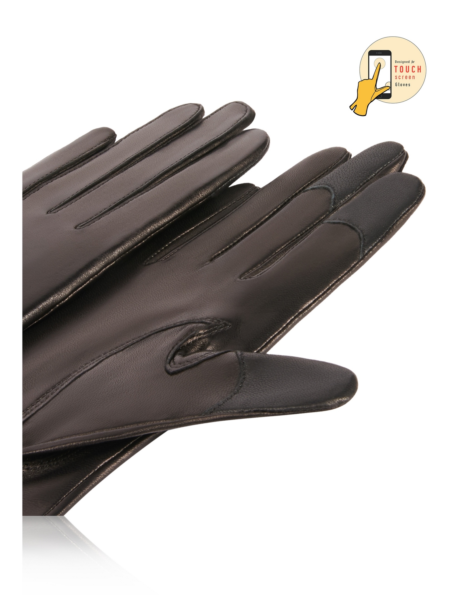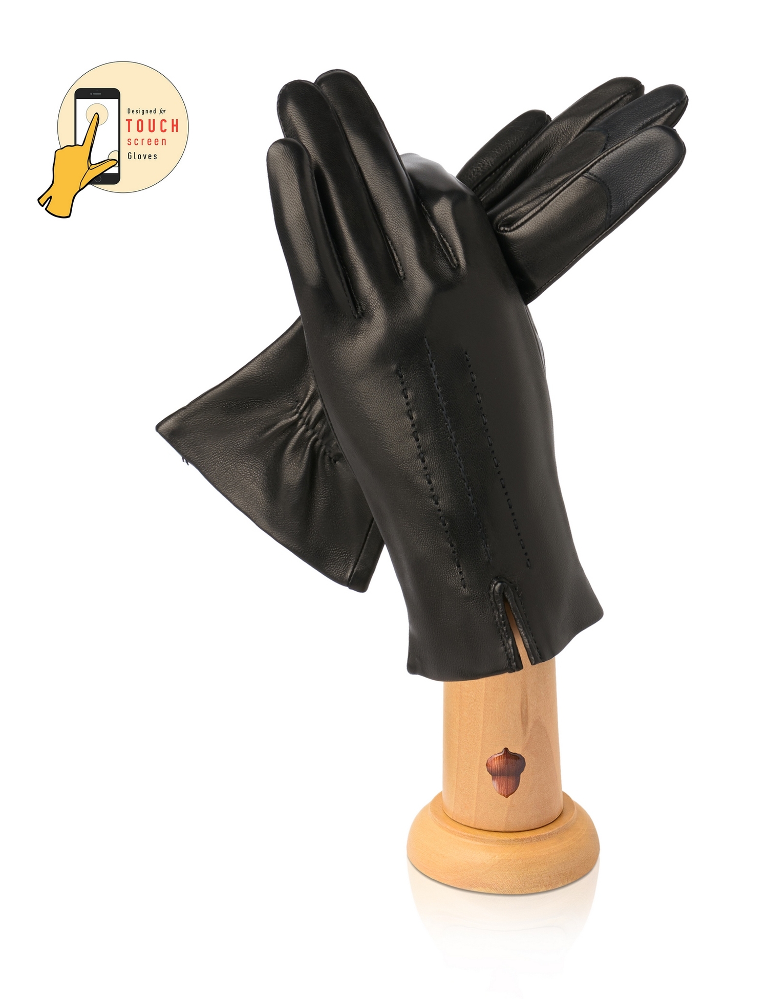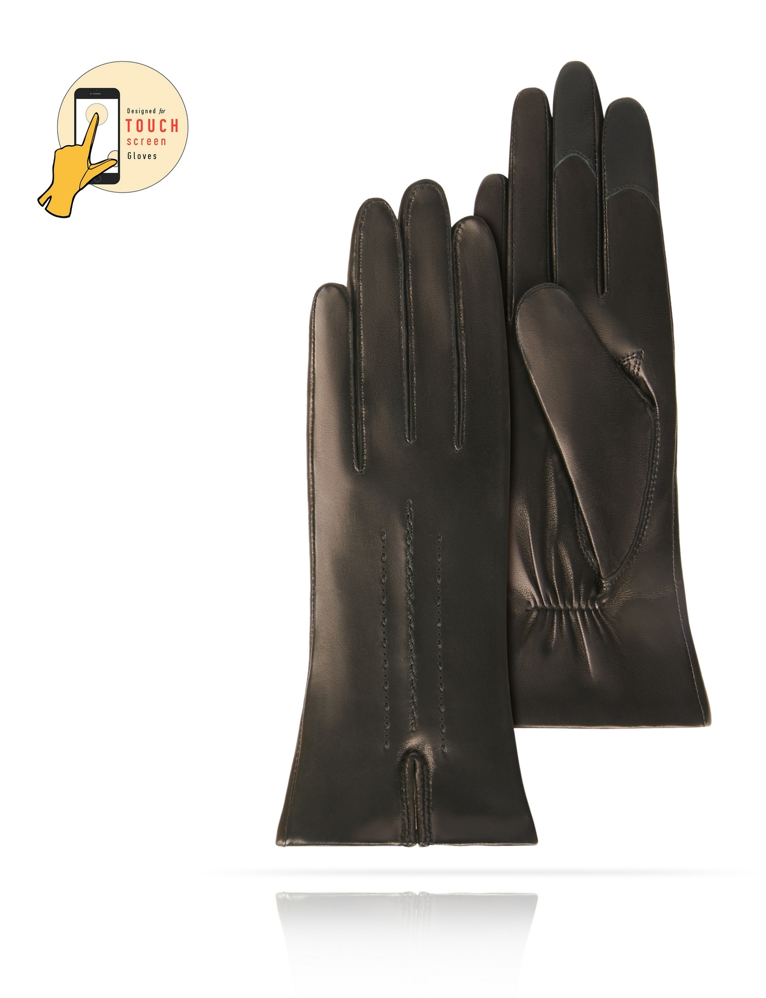 Touch Screen Sensitive Effect' — специальные кожаные заплатки, пальцы перчаток чувствительны к сенсорным экранам гаджетов. Изящный облегающий накладной «Stepp» шов. Длина манжеты 5,5 см