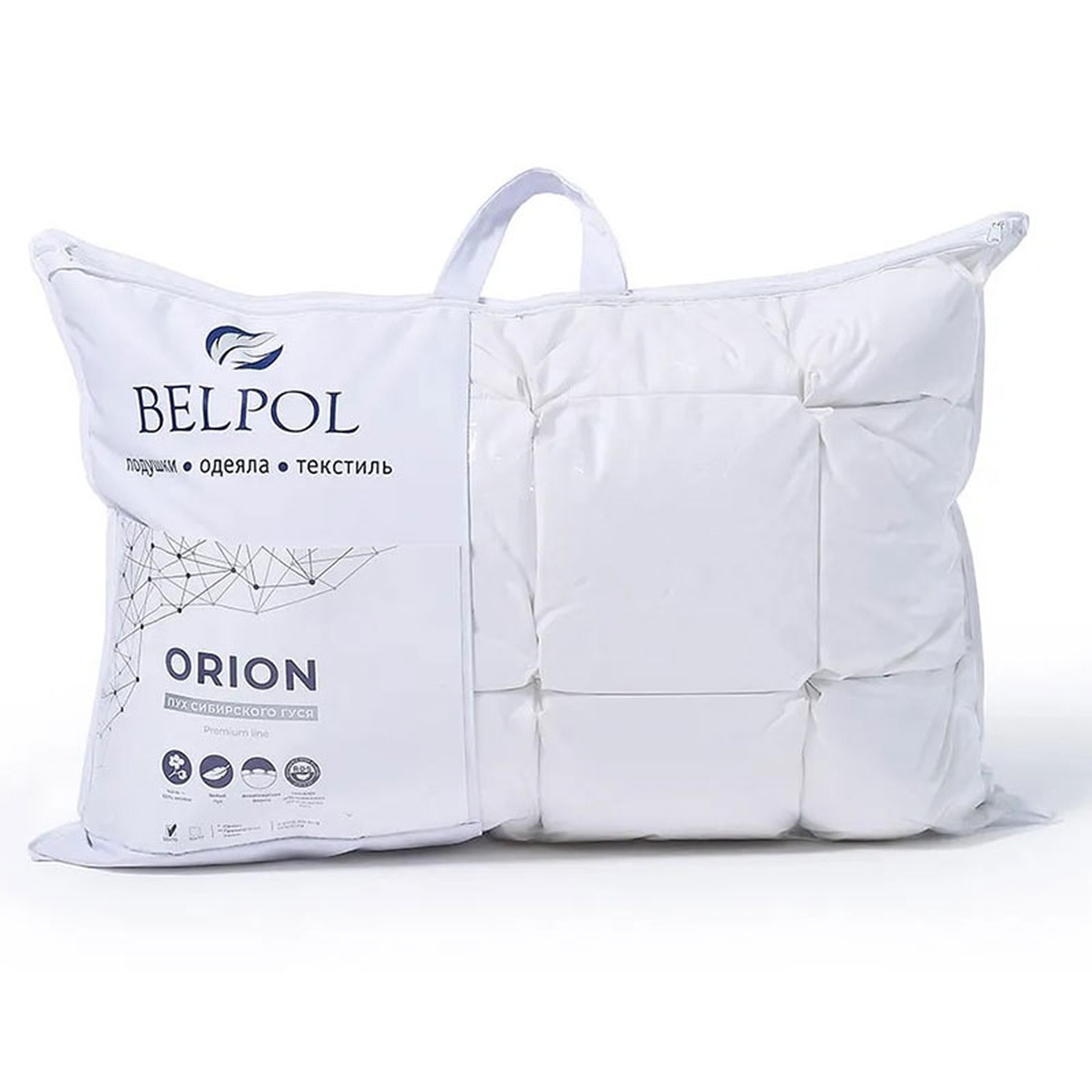Премиальная подушка Орион с дизайнерскими буфами гарантирует мягкость и повышенный уровень комфорта. Модель наполнена белым гусиным пухом категории «Экстра». Пуходержащий чехол с кантом выполнен из белоснежного сатина. Изделие упаковано в прозрачную сумку с фирменным логотипом.