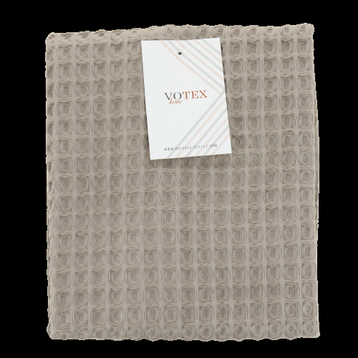 Полотенце изготовлено из вафельной ткани, с крупной ячейкой 12×12 мм. Крупная ячейка придает мягкости и воздушности изделию. За счет вафельной структуры, полотенца обладают высокой впитывающей способностью и гигиеническими характеристиками. Не вызывает аллергии и кожных высыпаний. Обладают хорошим воздухообменом и высокой износоустойчивостью.
