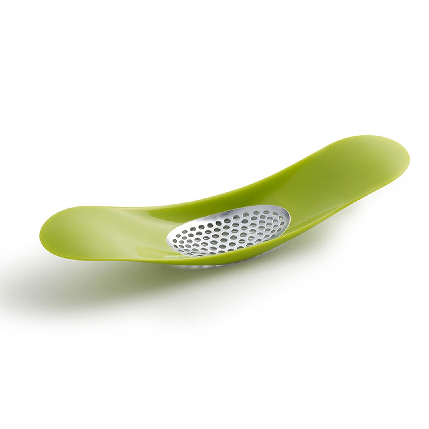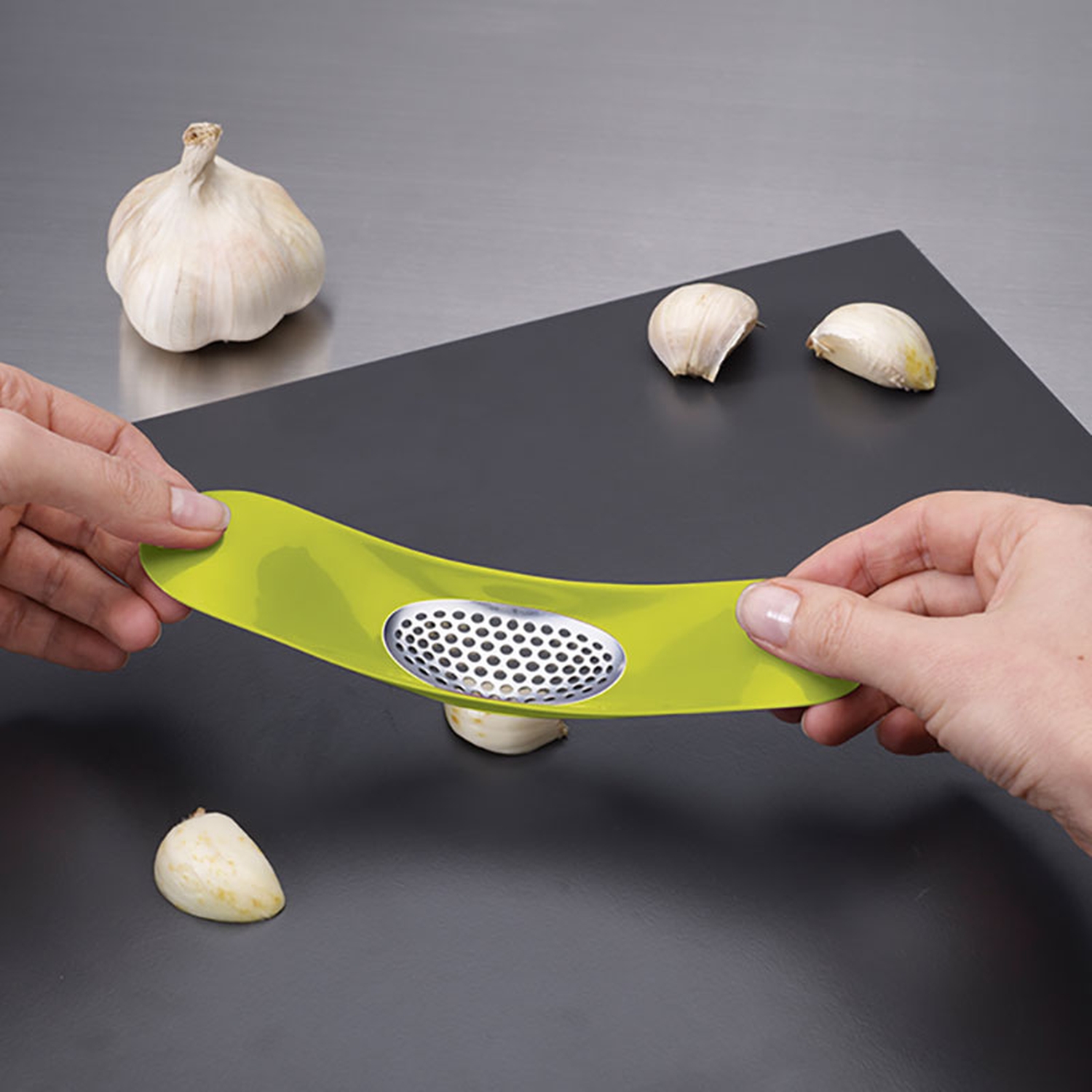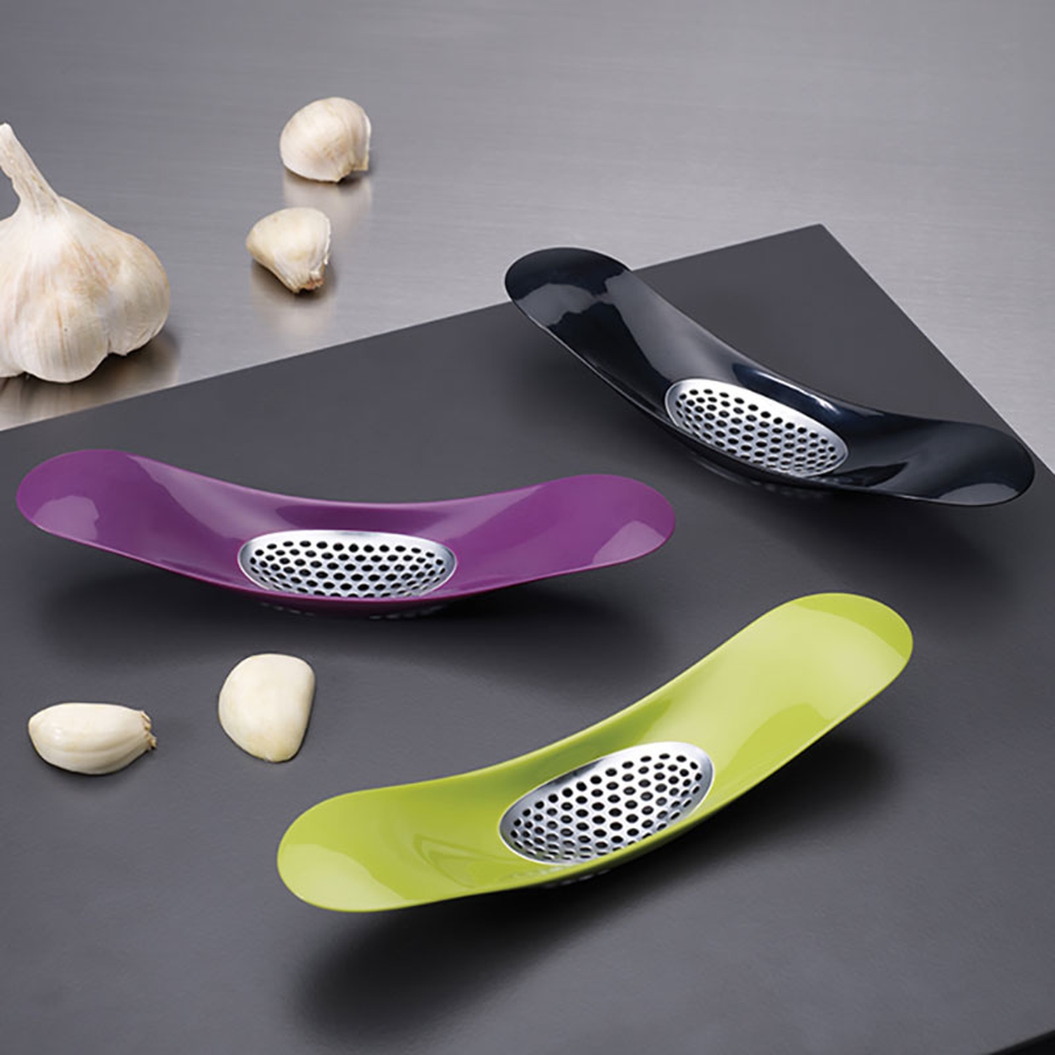Стильный пресс для чеснока быстро и с легкостью измельчит чесночные дольки: под давлением пресса кусочки, пропущенные через маленькие отверстия, превратятся в чесночную «кашицу». Слегка надавив на зубчик чеснока, плавно раскачивайте пресс для получения кашицы, а затем извлеките полученную массу с поверхности при помощи ложки. Пресс легко моется под струей проточной воды, но при желании его также можно мыть в посудомоечной машине.