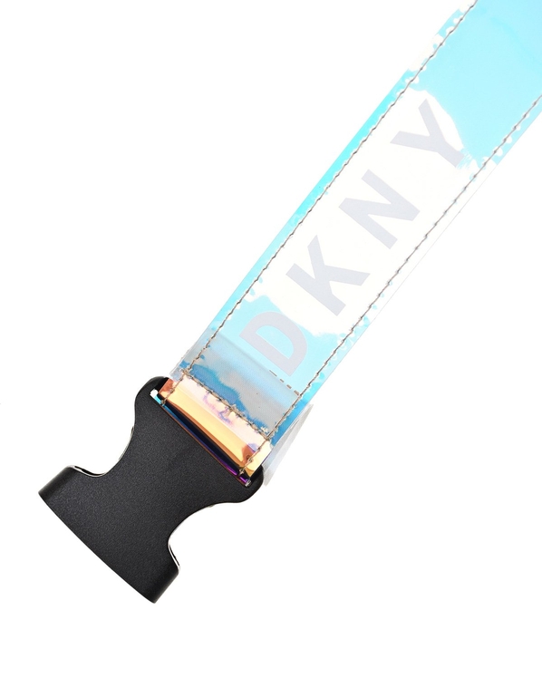 D31259 111 WHITE L20 Ремень DKNY перламутровый, лого на застежке, надпись
