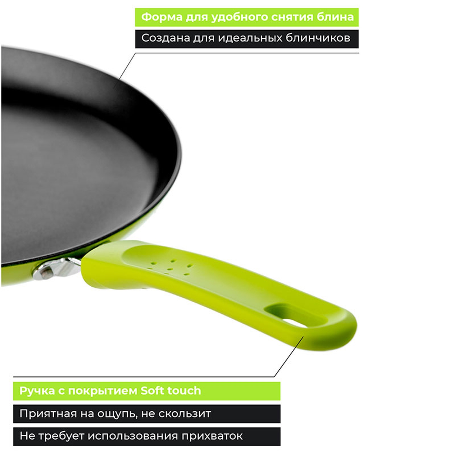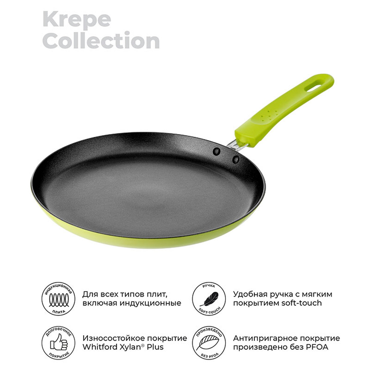 Яркие и практичные блинницы из коллекции Esprado® Krepe идеальны для приготовления блинов. Низкий борт позволяет с легкостью снимать и переворачивать блинчики. Внутреннее антипригарное покрытие Whitford не позволяет им пригореть и достаточно устойчиво для ежедневного использования. Эргономичная ручка с покрытием софт-тач удобно лежит в руке и при этом не выскальзывает в процессе приготовления. Встречайте день с радостью! И с Esprado®!