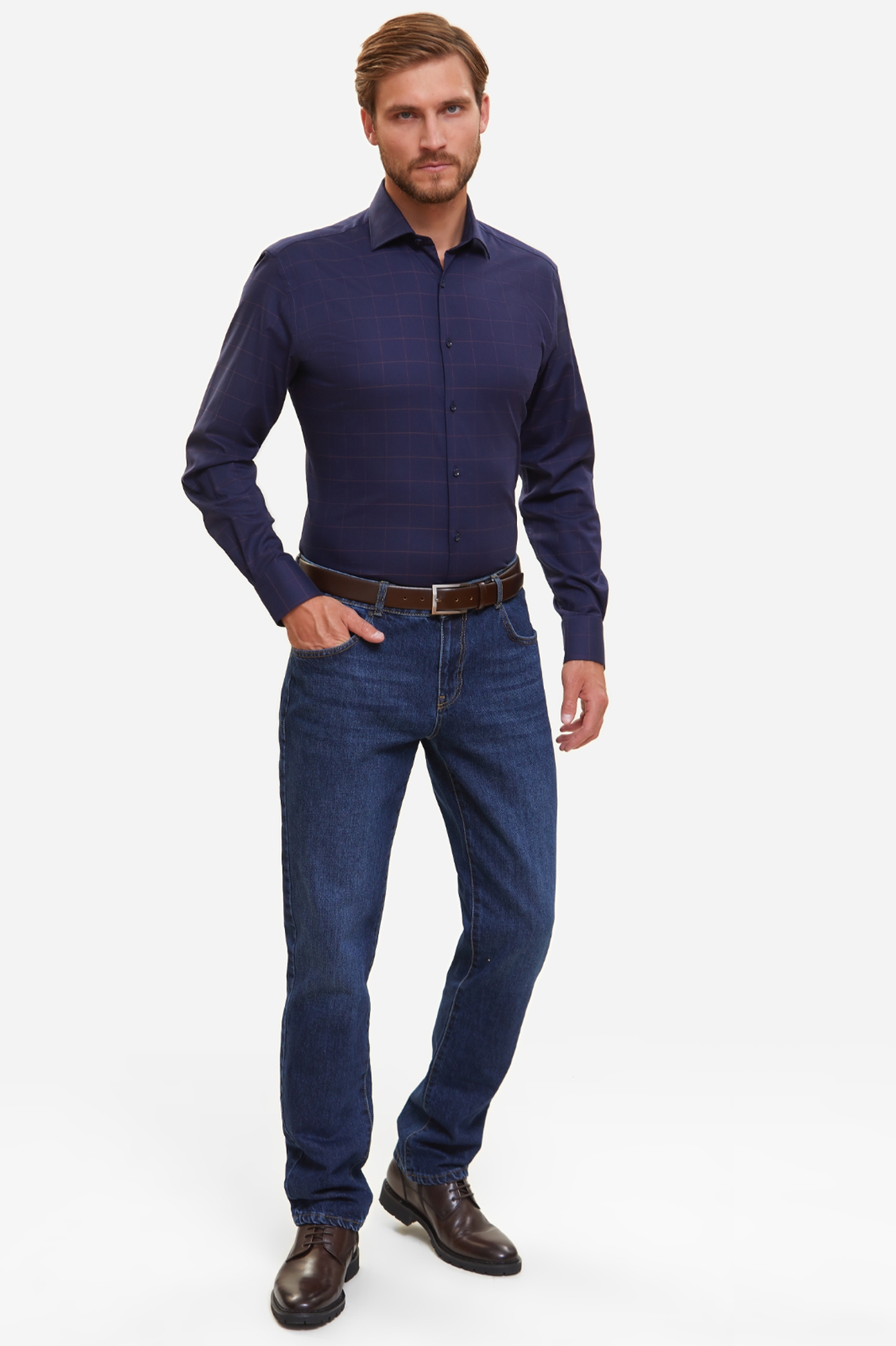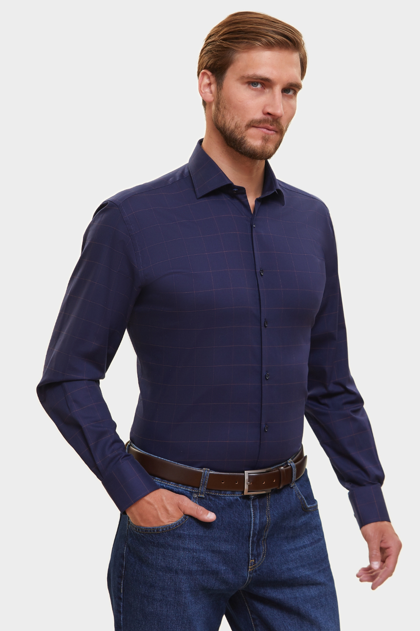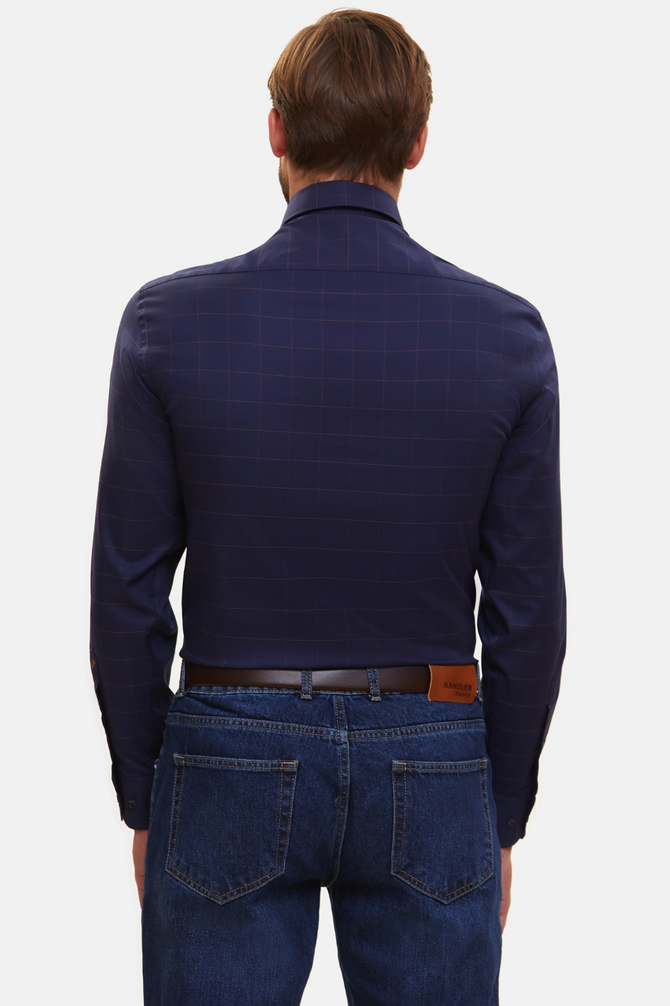 Универсальность и натуральный состав являются одними из главных преимуществ этого предмета гардероба. Рубашку KANZLER оттенка грозового неба сшили из тонкого смесового материала на основе натурального дышащего хлопка. Чтобы модель идеально садилась по фигуре, в состав материала добавили стрейчевые волокна эластана, чтобы сделать его более прочным. Ткань хорошо тянется и способна быстро возвращаться в первоначальную форму. Темно-синяя рубашка в клетку классического кроя выглядит достаточно формально и подходит как для офиса и деловой встречи в комплекте с брюками чинос, так и для повседневного образа с джинсами и контрастным ремнем. Материал: