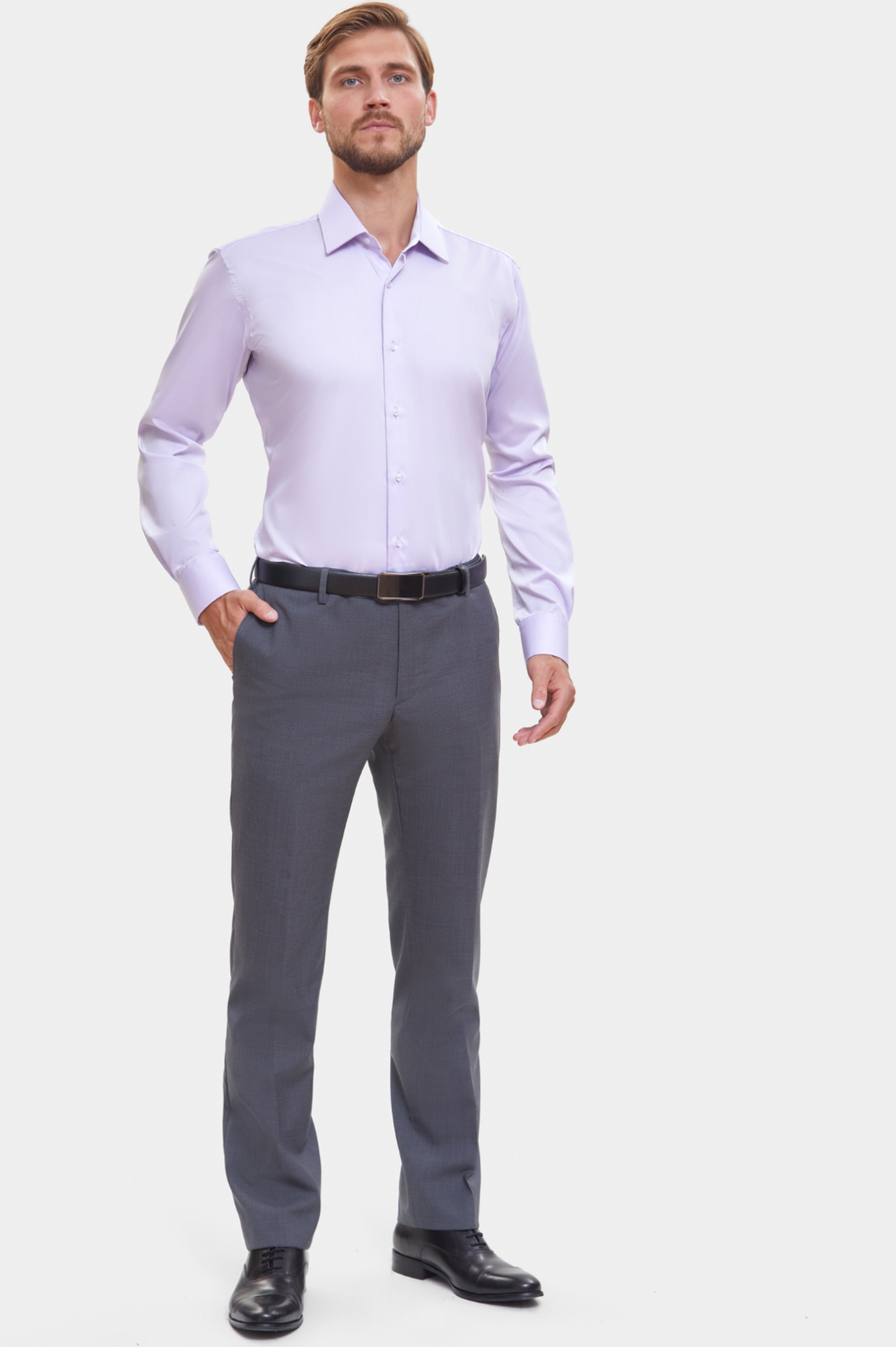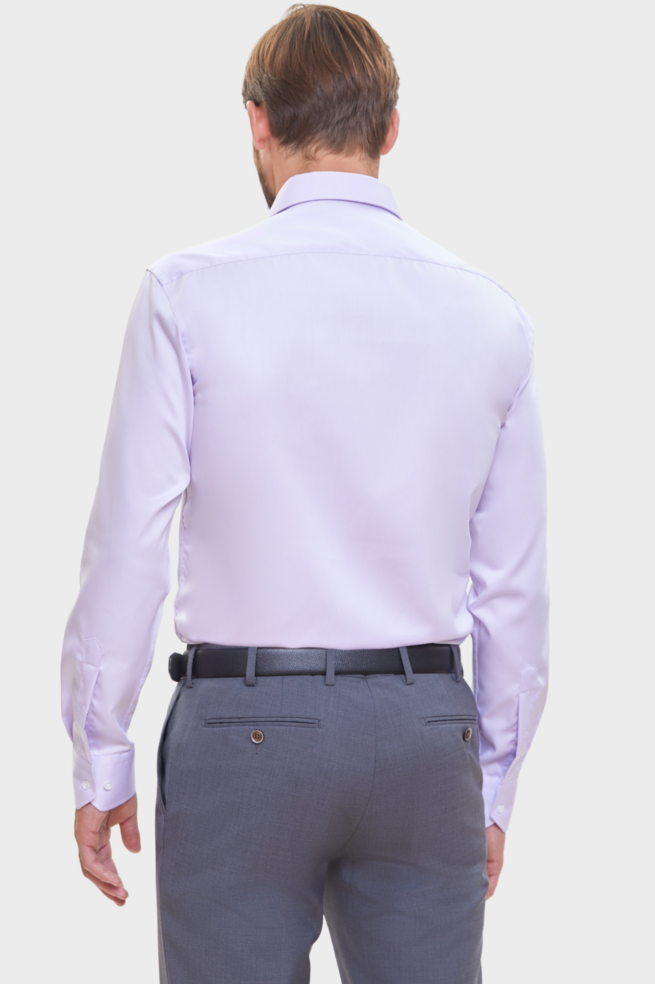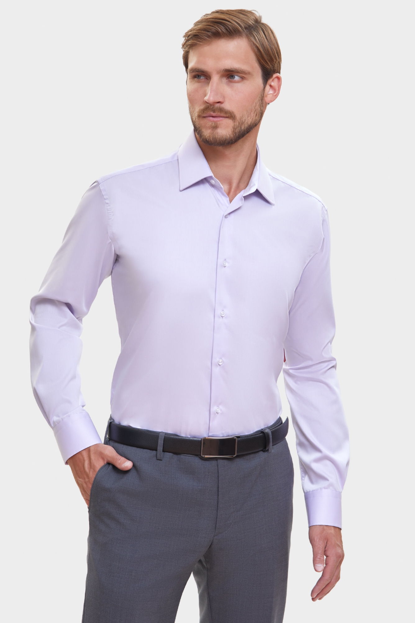 Светлые оттенки созданы для того, чтобы поднимать настроение даже в рабочие будни. Лиловый оттенок сорочки KANZLER смотрится ярко и при этом благородно, а в сочетании с элегантным прилегающим кроем возводит эту вещь в разряд изысканных и стильных моделей. Сорочка эффектно смотрится в офисе, на переговорах и встречах. Аристократический оттенок придает образу спокойствие, благородство и уверенность. Модель с широким итальянским воротником выглядит по-деловому, но не строго. Две пуговицы на рукавах позволяют регулировать плотность прилегания манжетов. Сорочку можно носить в любое время года. Дорогая легкая ткань из натурального, гипоаллергенного хлопка обеспечивает телу комфорт в течение дня. Материал: