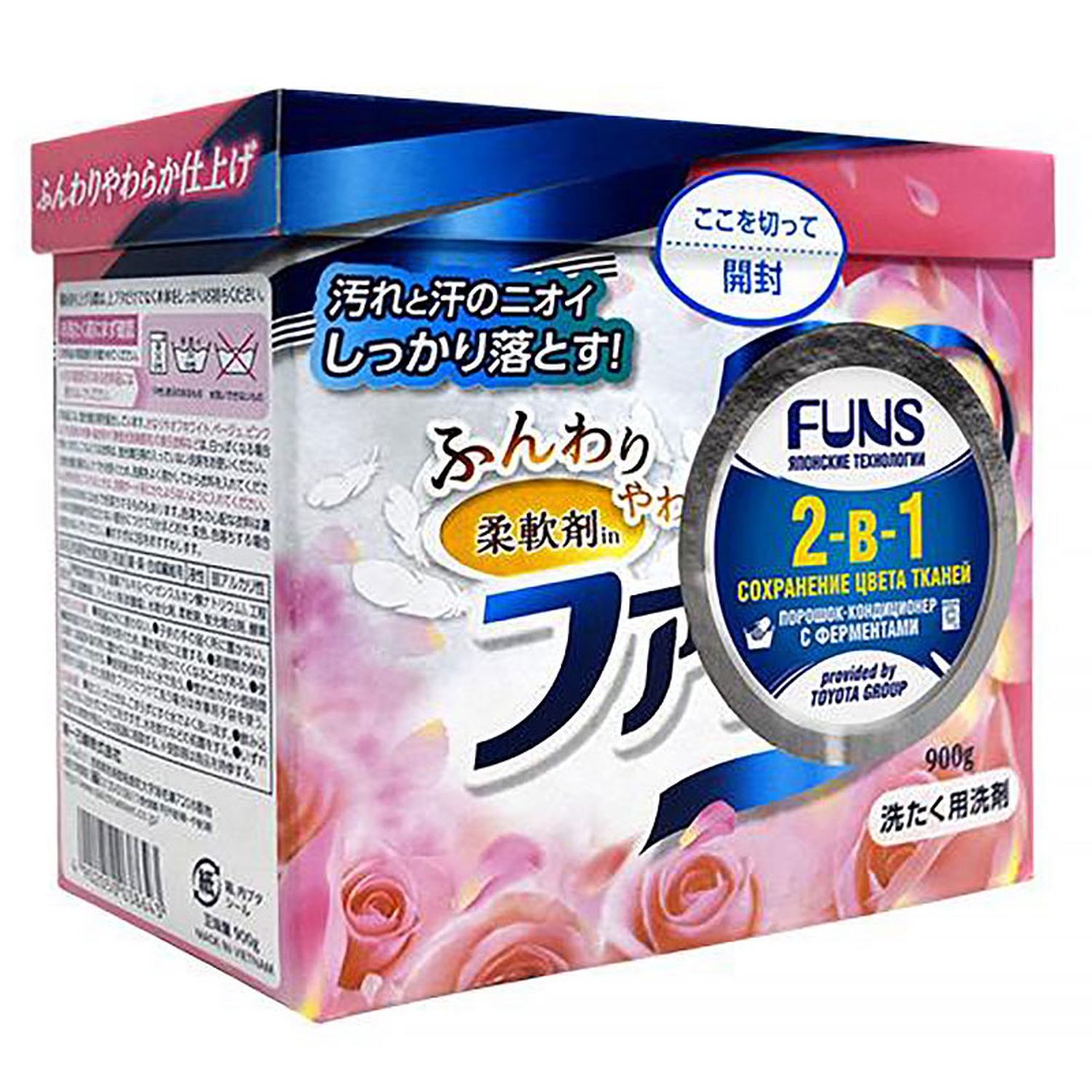 Концентрированный стиральный порошок FUNS 2-в-1 с кондиционирующим эффектом идеально подходит для стирки цветного, белого и черного белья. Сохраняет цвета яркими, а волокна ткани мягкими и объемными. Формула с двойным действием: 1.Эффективно удаляет застарелые и трудновыводимые пятна, пищевые жиры, пятна от пота и неприятный запах благодаря ферментам, которые входят в состав. 2.Кондиционер в составе порошка придает вещам мягкость и нежный аромат, который сохранится в течение нескольких дней после стирки, облегчает глажку белья. Входящие в состав порошка ферменты оптимально работают при температуре не выше 42 С. Стирка в холодной воде позволяет увеличить срок службы любимых вещей, снизить время стирки и расход электроэнергии.