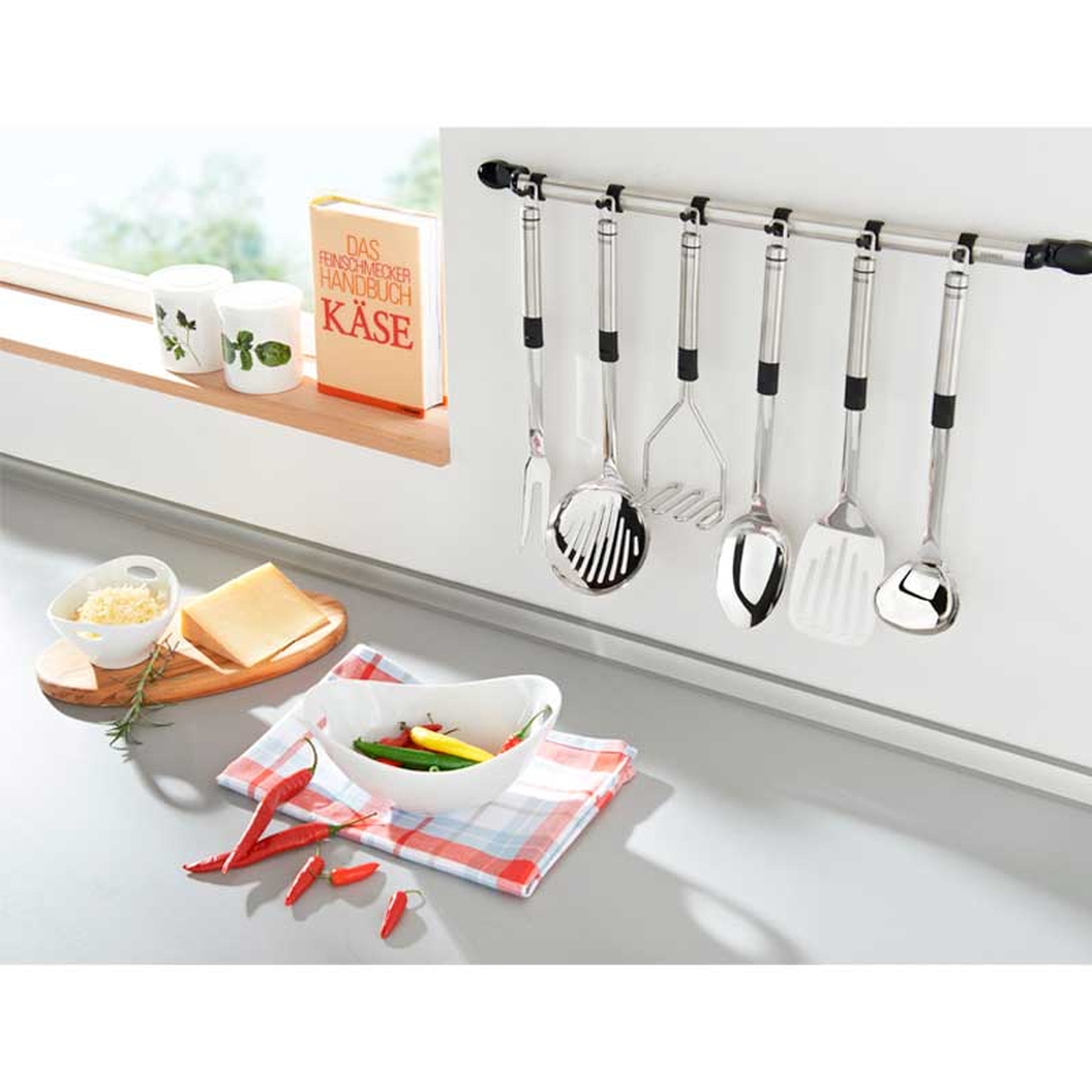 Толкушка для картофеля из нержавеющей стали Leifheit Proline: — продуманный дизайн, — удобная подвесная петля, — эргономичная ручка.