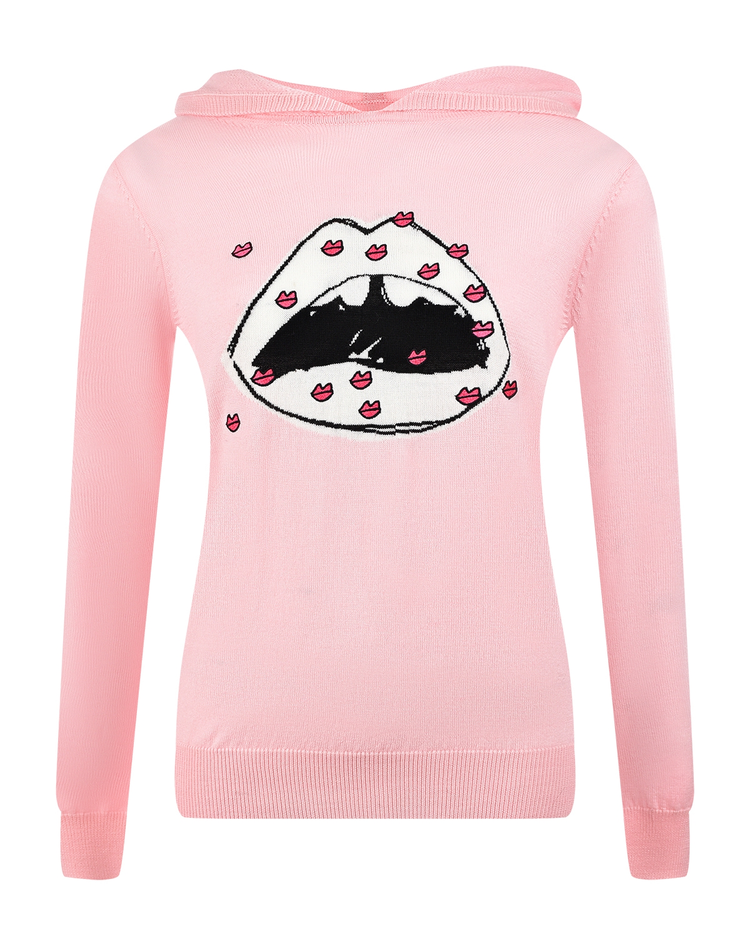 KN2899 pink Z21 Толстовка-худи Markus Lupfer с капюшоном, мини губы на губах, пайетками