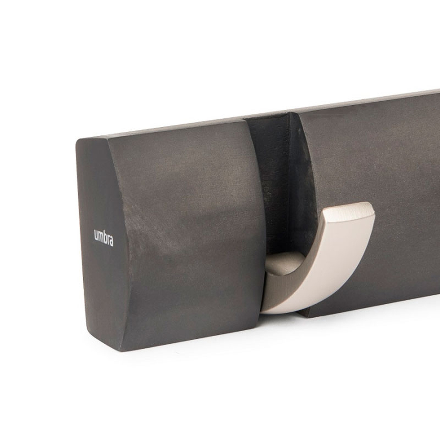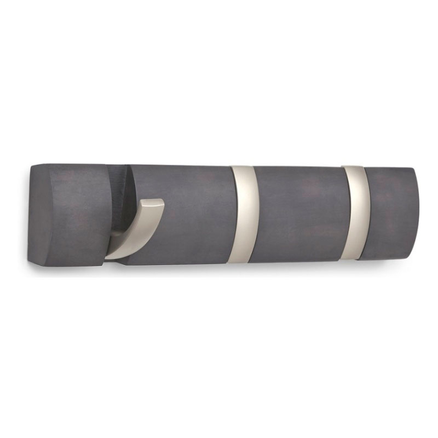 Настенная вешалка Flip станет изысканным украшением современного или классического интерьера дома. Особенность модели это идеальное сочетание оригинального дизайна и компактных форм. Конструкция снабжена 3 выдвижными крючками, именно поэтому вешалка отлично подойдет для небольших помещений. Мебель для прихожей имеет гладкий профиль и скрытую крепежную панель, благодаря которой она без проблем монтируется на любой стене. Вешалка канадского бренда Umbra выполнена из высококачественной древесины, устойчивой к высоким нагрузкам и воздействию ультрафиолетовых лучей. К основанию изделия прикреплены прочные крючки, которые выдерживают нагрузку до 2,3 кг. Вешалка подойдет для хранения верхней одежды, сумок, зонтов и прочих аксессуаров всей семьи. Материал: дерево, металл. Размер: 30×3х7 см.