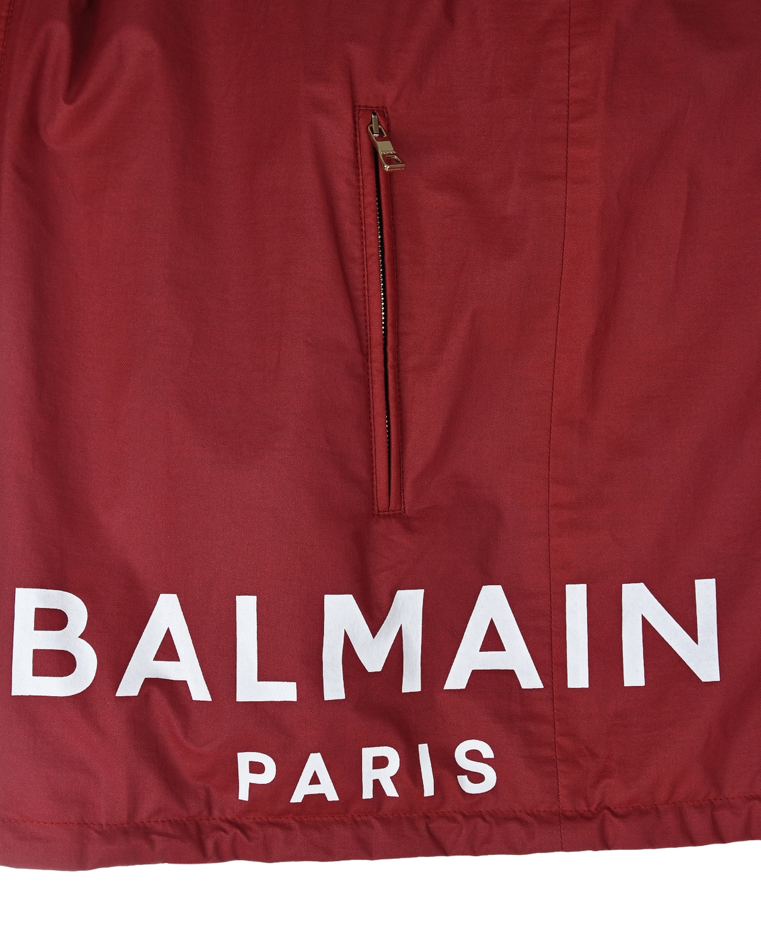 6O2577 410 DL21 Ветровка Balmain кап, молния, принт белый лого внизу